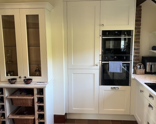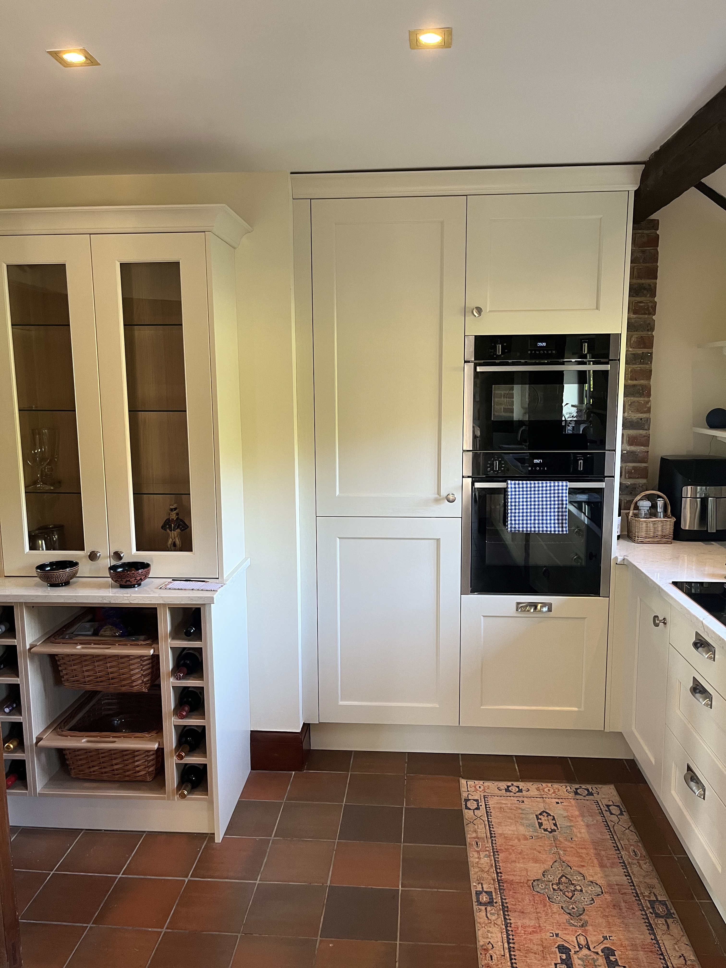 A sophisticated, high-end Shaker kitchen designed for maximum practicality without compromising on style. This Henfield home now features both a kitchen and utility in our Wakefield Ivory solid ash painted doors. Thoughtfully designed storage solutions and refined finishes create a space that is as functional as it is beautiful.