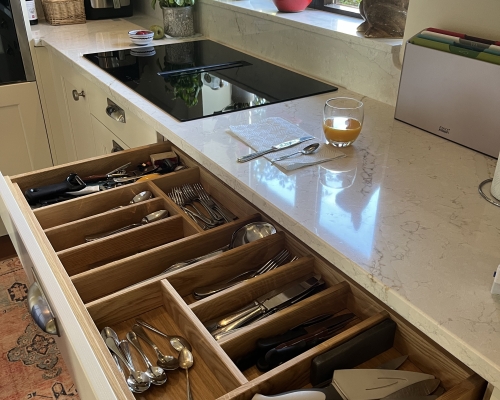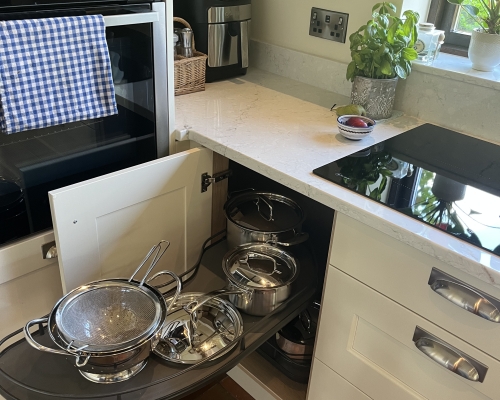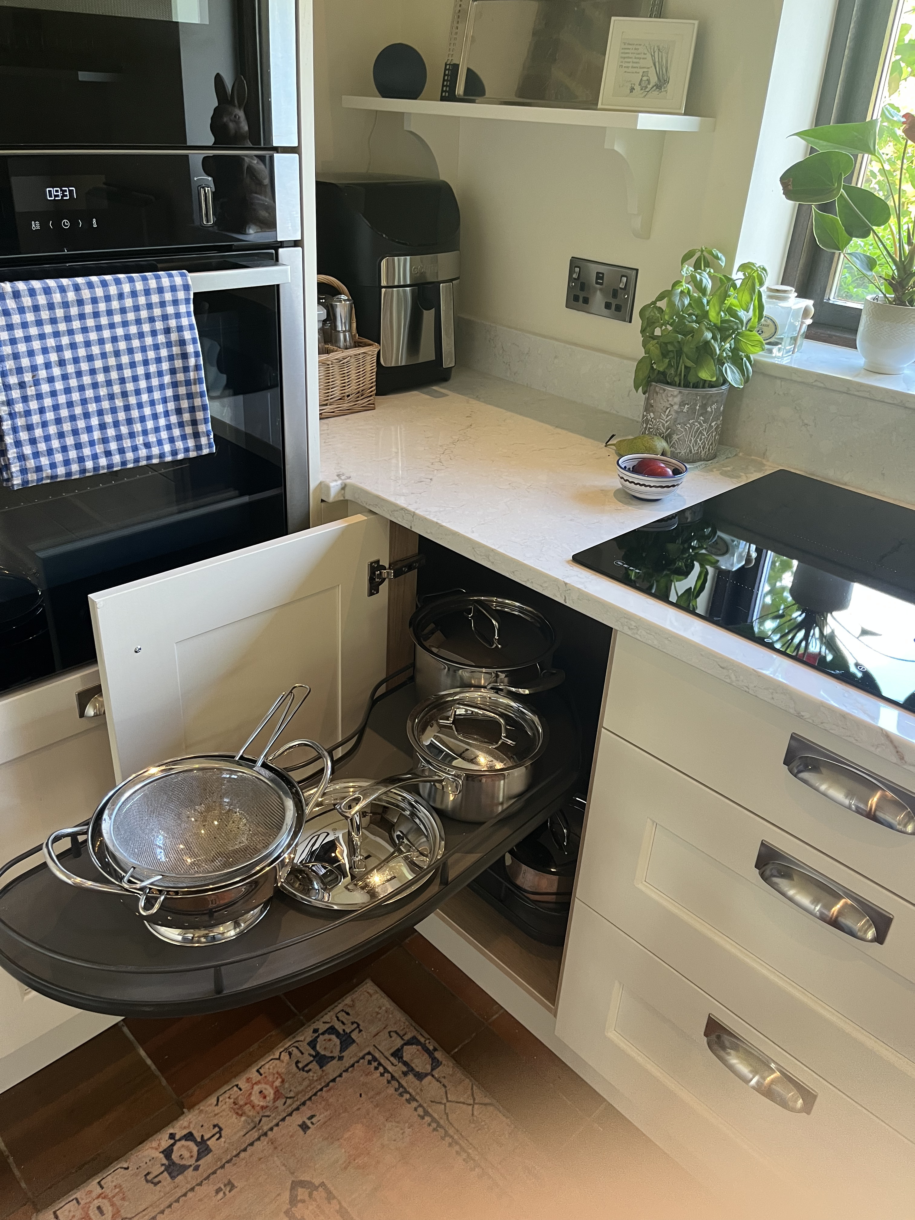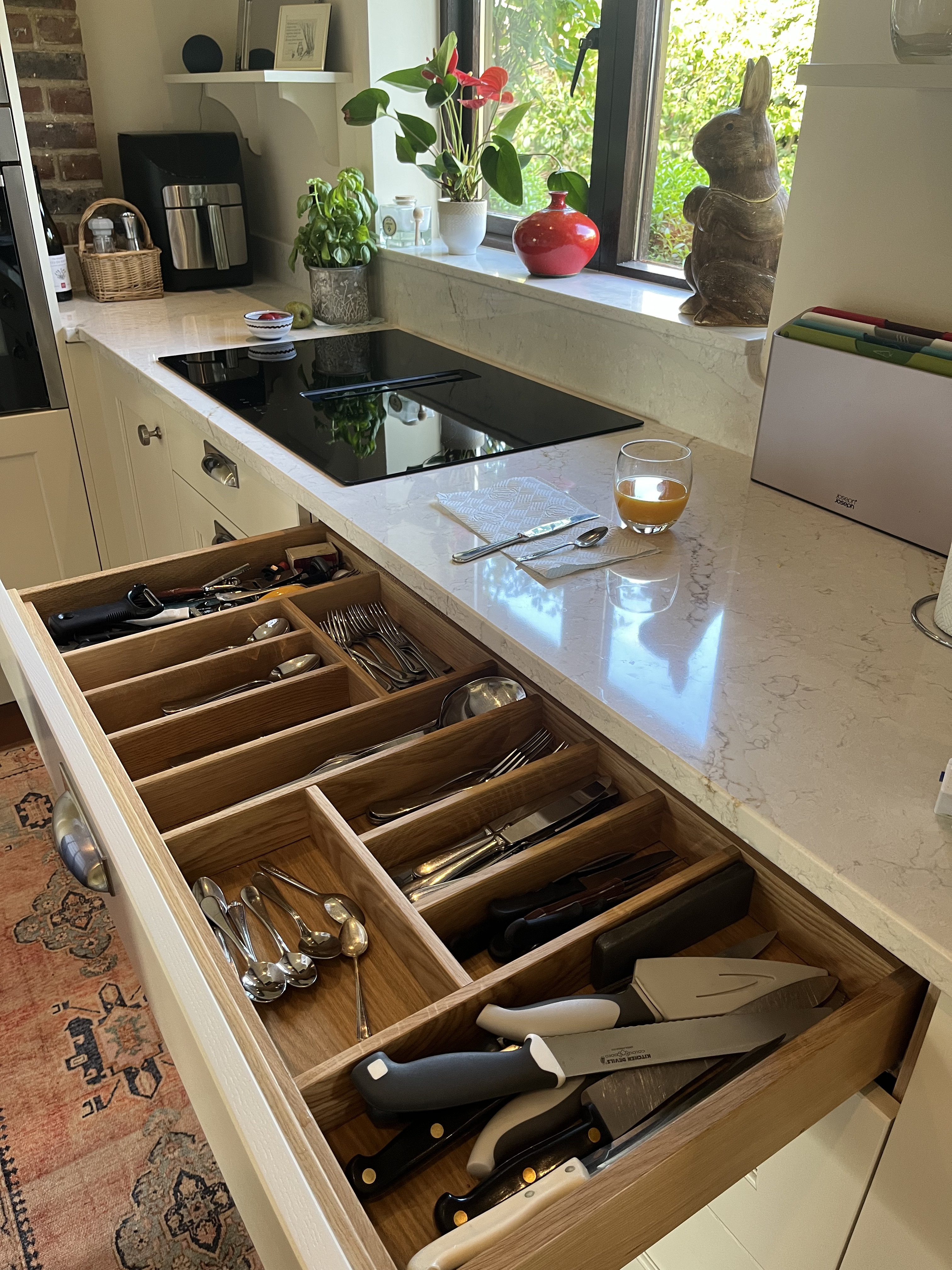 • Features: Dovetail drawers, internal drawers, corner pull-outs, larder pull-outs, pull-out bins, and multiple clever storage solutions